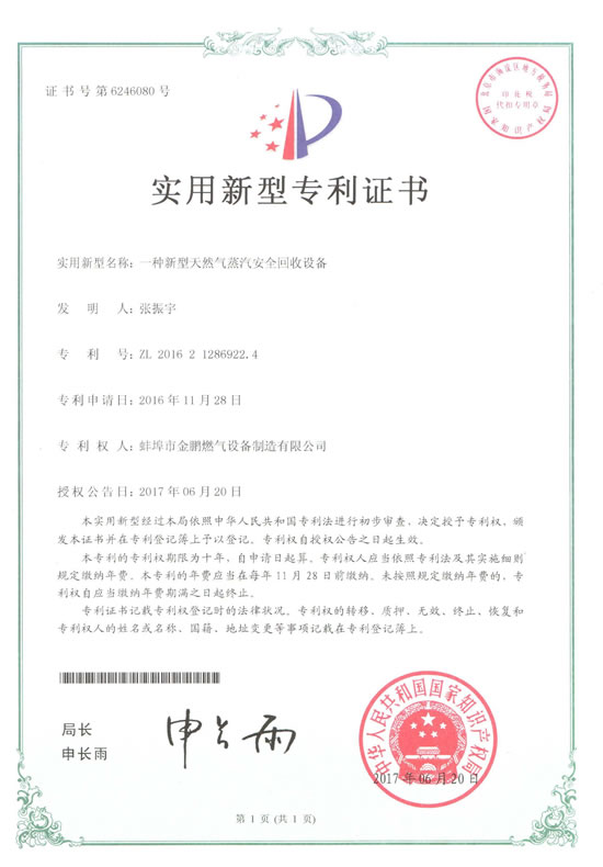 实用型专利证书