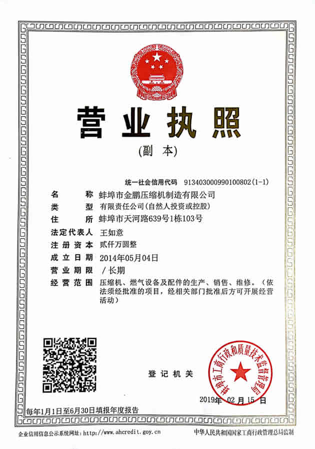 版权所有:中国·蚌埠市金鹏压缩机制造有限公司 网址:www.bbyx.com.cn 地址:蚌埠市黄山大道8319号